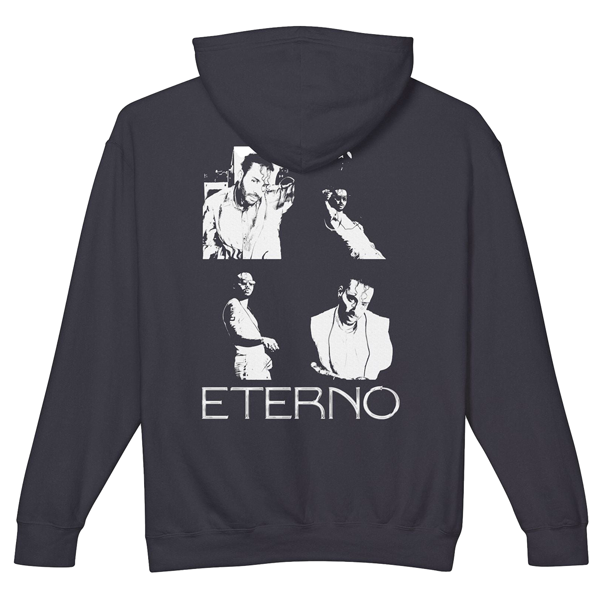 Prince Royce "Eterno" design printed front and back on a black hooded sweatshirt