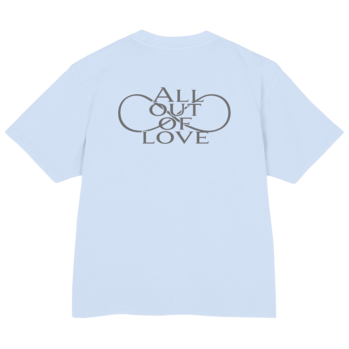 Prince Royce "Eterno (All Out Of Love) design printed front and back on a light blue pigment dyed short sleeve t-shirt